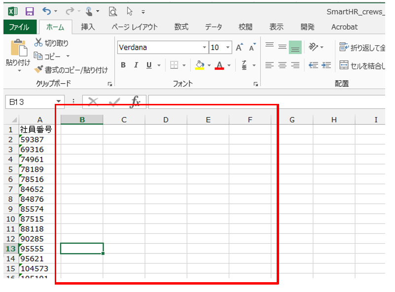 出力したExcelの社員番号の列をコピーして、上記ファイルに貼り付けをしてください。